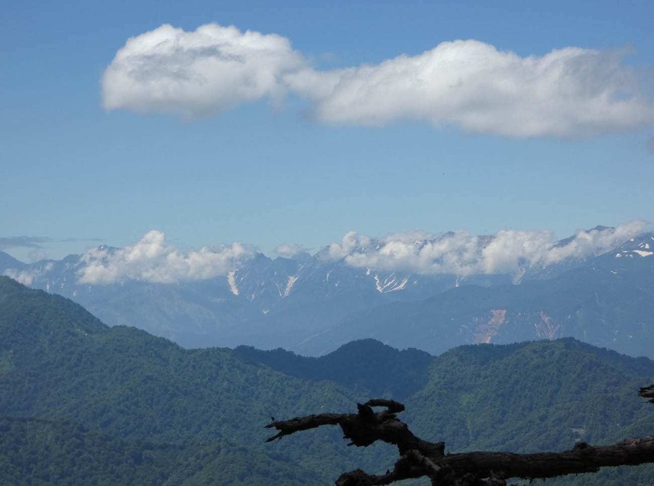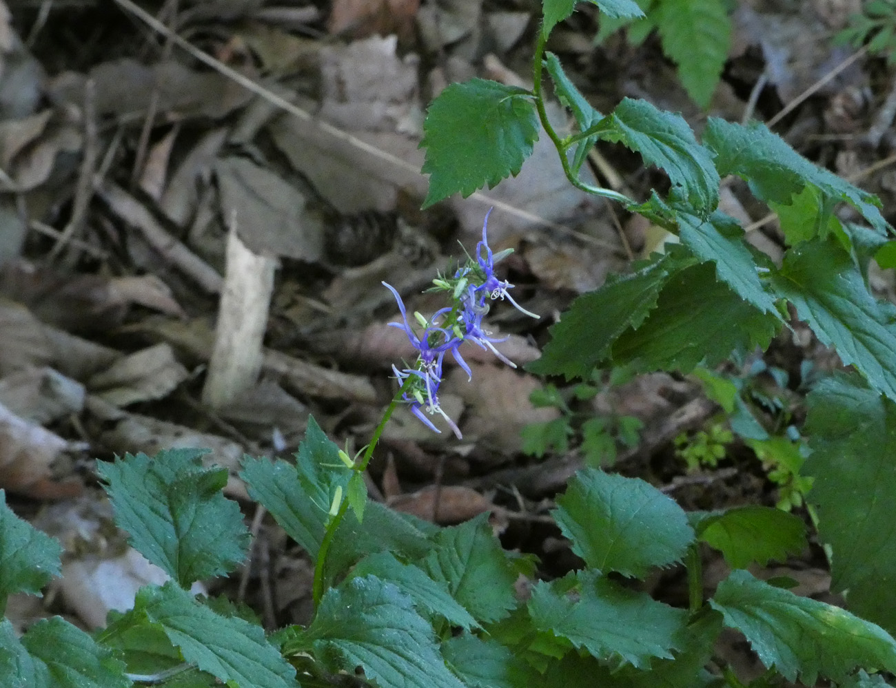 2025年8月1日 登山道を進むとブナの林が美しい。シカはあまり入っていないようだ。ブナが健全に更新している。オオカニコウモリがあった。花はこれから。流れにイワナがいて良い。葉を落として反応を見