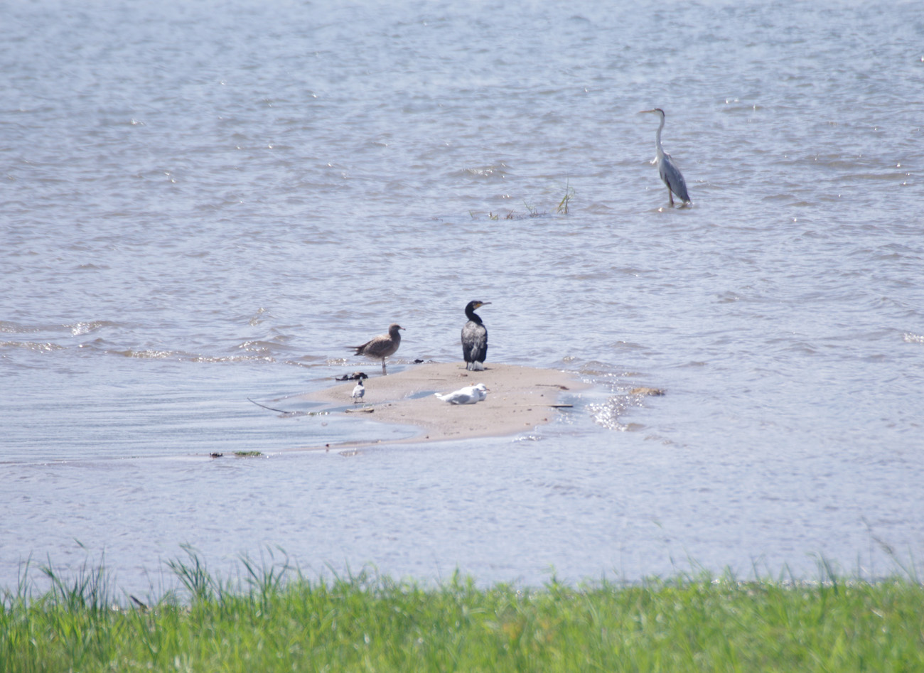 2025年7月22日 諏訪湖でウミネコ、ユリカモメ、クロハラアジサシを見る。暑い。キンクロハジロが4羽いた。これもいつか。カンムリカイツブリとオオバンの親子。YSGが飛んだ。チョウトンボもいる。